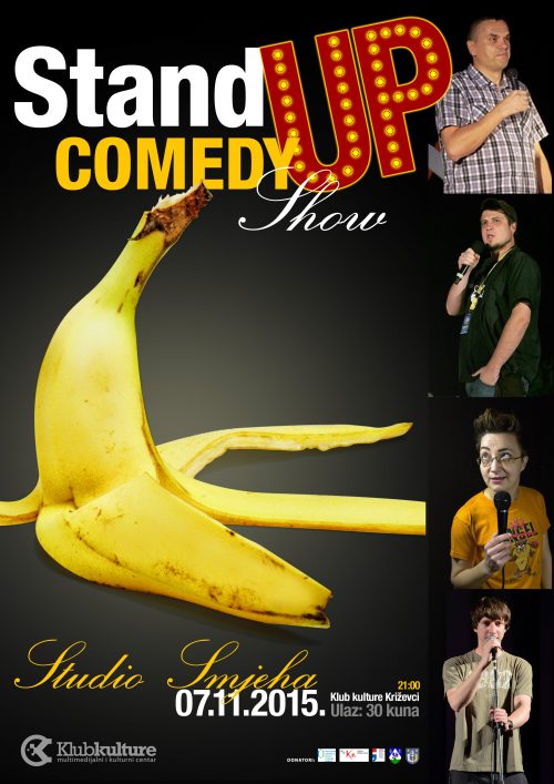Slavimo 10 godina kluba. Cijeli mjesec studeni. Prvi u nizu programa – želimo vas nasmijati, razveseliti, opustiti. Dovodimo neke od najboljih hrvatskih komičara i to na dan predizborne šutnje. Ne znamo ni sami kako će to završiti, ali očekujemo prekomjerne doze smijeha. Subota 07.011.2015.| Klub kulture Križevci | 21:00 Stand Up Comedy Show STUDIO SMIJEHA Ulaz: 30 kuna Tihomir Psihomir Paravina Dolazi iz Dubrave i komičar je koji objašnjava svoje fore za razliku od mađioničara koji Vam nikad neće reć u čem je štos. Toliko dugo je za mikrofonom da bi trebao plaćat pretplatu. Služi se klavirom. Htio bi imati dim mašinu da može nestat s pozornice. Tvrdi da se može “izgorit” i pod reflektorima isto ko pod suncem. Marina Orsag Veliko je dijete u maloj odrasloj osobi. Vječiti Petar Pan i osoba koja se hrani smijehom i pozitivom publike. I svjesna je toga da ne nastupa na pozornici kao stand up komičarka, imala bi velikih psihičkih problema. Ovako ima samo malih. Za čokoladu prodala bi sve, a mota ljude oko sebe istom brzinom kojom mota. Domagoj Pintarić 36-godišnji je komičar iz Zagreba. Stand-up komediju smatra dobrom terapijom za sve ono što ga u svakodnevnom životu strahovito živcira, od reklama i serija do kulinarskih emisija, situacija u tramvajima i trgovinama, diskriminacije i drugačijih životnih stilova, sporta i globalnih urota multinacionalnih korporacija i banaka s ciljem porobljavanja ljudi i koloniziranja Zemlje vanzemaljskim entitetima te tv programa općenito. Saša Turković Najstariji (godinama a ne stažem) stalni komičar studija smijeha … fore izvodi brzo jer osjeća da mu nije ostalo još puno vremena. Otac je troje djece (barem prema službenim dokumentima) koje, na njihov užas i usprkos njihovu negodovanju, često spominje u svojim nastupima. Preko dana vodi vlastitu tvrtku, a navečer odlazi na nastupe u studijo smijeha – ženi laže da ide na terapiju za vodu u koljenu. Osim stand up-om, bavi se life coachingom i motivacijskim govorništvom što dovodi do učestalih zabuna … nakon nekih njegovih izjava publika nije sigurna dali bi se trebala smijati ili odraditi trening u teretani. Nastojimo mu dati priliku da nastupa što ranije jer nakon što popije svoje ljekove za reumu u 22h … teško ostaje budan.