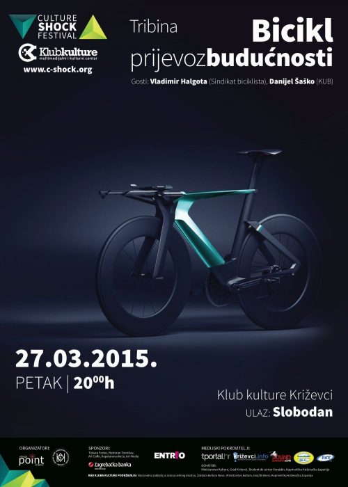 Petak 27.03. | Klub kulture Križevci | 20:00 TRIBINA Bicikl – prijevoz budućnosti Gosti: Vladimir Halgota (Sindikat biciklista), Danijel Šaško (KUB) Ulaz slobodan sindikatbiciklista.hr Na ulicama Križevaca u posljednje vrijeme susrećemo sve veći broj gradskih biciklista. Kultura bicikliranja počela je zauzimati važno mjesto u razmišljanju i konceptu gradskog prijevoza. Efikasni gradski prijevoz, isplativost, samoodrživost samo su neke od prednosti bicikla koji je definitivno prijevoz budućonosti u razvoju gradova. Koliko su daleko otišli Križevci u tom razvoju, kakvo je stanje na nacionalnoj razini i zašto je bitna kultura bicikliranja izložit će gost tribine Vladimir Halgota iz Sindikata biciklista, a križevački smjer razvoja i ulaganja u infrastrukturu prezentirat će Danijel Šaško iz Križevačke udruge biciklista.