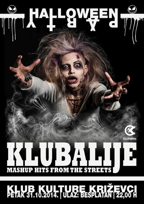 Petak 31.10.2014. | Klub kulture Križevci | 21,00h HALLOWEEN PARTY predstavlja: KLUBALIJE (mashup hits from the streets) Ulaz: besplatan Nećemo razočarati ni ove godine, nastavljamo tradiciju suludog Helovin partijanja u maskiranom izdanju. U klubu žurka praćena Klubalijama, rezidentski dvojac DzonSkaVolta & Vrabihno vrti samo clubbing pozitivno. Prava mjuza, hitovi budućnosti i klasici mladosti, mikrofon ćemo skratiti na minimalno ali slatko. Bit će nagrade za najbolje maskirane kao i svake godine, o tome ćemo uskoro. Ulaz je besplatan za sve koji vole dobar party!