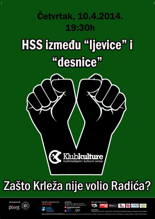 Četvrtak | 10.4.2014. | 19:30 | Klub kulture TRIBINA Ulaz slobodan Hrvatska seljačka stranka između “ljevice” i “desnice” Predavač: dr.sc. Ivan Peklić (Zavod za znanstvenoistraživački i umjetnički rad HAZU-a Koprivničko-križevačke županije u Križevcima) Tijekom svoje 110-godišnje povijesti HSS se vrlo često priklanjao desnim ili lijevim opcijama. Prvo veće skretanje lijevo događa se 1923. kada Radić učlanjuje HSS u Seljačku internacionalu. Tijekom Drugog svjetskog rata dolazi do podjele unutar samoga HSS-a na lijevo i desno krilo. U emigraciji su članovi HSS-a naravno priklonjeni desnoj opciji. Od vremena stvaranja samostalne države Hrvatske do danas HSS je bio u koaliciji s desnim i lijevim političkim opcijama. Dođite na povijesno predavanje ovogodišnjeg festivala, koje će održati upravitelj Zavoda za znanstvenoistraživački i umjetnički rad Hrvatske akademije znanosti i umjetnosti (HAZU) Koprivničko-križevačke županije u Križevcima. Zašto Miroslav Krleža nije volio Stjepana Radića? Predavač: doc.dr.sc. Davor Balić (Filozofski fakultet Sveučilišta Josipa Jurja Strossmayera u Osijeku) Miroslav Krleža često je, bilo u svojim spisima bilo u marginalijama koje je izdiktirao uz predloženi sadržaj natuknica za “Enciklopediju Jugoslavije” i “Enciklopediju Leksikografskog zavoda”, izricao prosudbe i o, kako ga naziva, seljačkom tribunu Stjepanu Radiću. U izlaganju će biti ukazano na razloge zbog kojih se Krleža prema Radiću, posebice prema njegovim pogledima na svijet, uvjerenjima, kao i prema njegovu političkom djelovanju, redovito odnosio izrazito kritički.