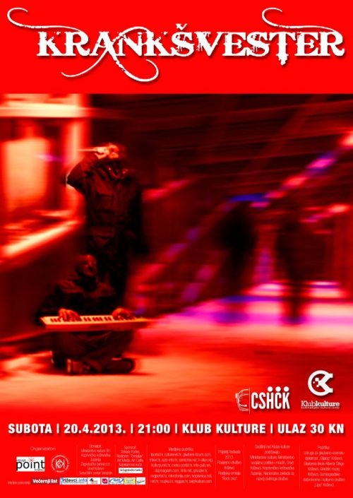 Subota | 20.4.2013. | 21:00 | Klub kulture KONCERT Krankšvester Šokantni i tvrdi underground hip hop dvojac Sett&3ki Stil promovirati će svoj novi album Krankšvester 2 upravo na Culture Shock Festivalu. Kombinacija porno rima, dubstep beatova i vulgarnih liričkih finesa izrodila je novu atrakciju na sceni pa i ne čude rasprodani klubovi diljem Hrvatske. Baza obožavatelja raste svakim danom, a kako su Križevci uspjeli zauzeti svoje mjesto na promotivnoj turneji, očekujemo odličnu atmosferu za sve tvrde i manje tvrde Krankšvester fanove. Ulaz: 30kn www.last.fm/music/Krankšvester