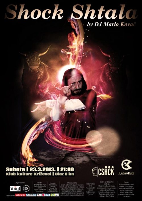 Subota | 23.3.2013. | 21:00 | Klub kulture SLUŠAONICA „Shock Shtala” DJ Mario Kovač Kazališni i filmski redatelj, DJ i kvizoman, čovjek za specijalne zadatke i nezaboravne derneke, ponovno se vraća u Križevce! Nekoliko je puta do sada punio Klub kulture masom koja se uz njegov suludi nadrealistični miks svih stilova i žanrova žestoko zabavljala uz bendove koji se abecedom nalaze između Abbe i ZZ Topa, a stilski između Motorheada i Tajči. Dolaskom proljeća šokirajte i vi svoja osjetila, uz kakofonični čušpajz koji može poslužiti kao zvučna podloga za orgije uma, tijela i sluha! Ulaz slobodan www.timeoutcroatia.com/culture/performance/mario-kovac/