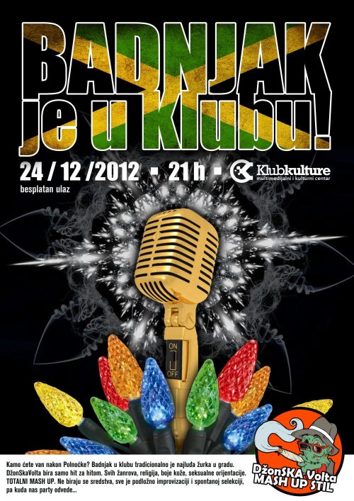 24.12.2012. | Klub kulture Križevci | 21,00h Badnjak je u klubu! DzonSkaVolta (mash up stil) Ulaz: besplatan Kamo ćete van nakon Polnoćke? Badnjak u klubu tradicionalno je najluđa žurka u gradu. DzonSkaVolta bira samo hit za hitom. Svih žanrova, religija, boje kože, seksualne orijentacije. Totalni mash up. Ne biraju se sredstva, sve je podložno improvizaciji i spontanoj selekciji pa kuda nas party odvede.