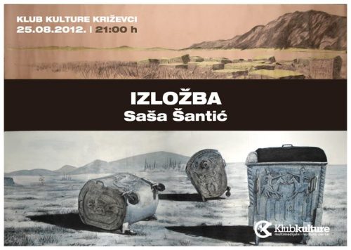 IZLOŽBA – Saša Šantić 25.08.2012. Klub kulture Križevci 21,00h | ulaz besplatan Galerija K nastavlja sa radom te u subotu 25. kolovoza s početkom u 21 sat predstavlja izložbu slika Saše Šantića iz Mostara a sama izložba biti će otvorena do 15.rujna. Šaša Šantić živi i radi u Mostaru, poklonik je klasičnog štafelajnog slikarstva kojim šalje svoje satirične poruke svijetu poigravajući se pri tome s hiperrealizmom u maniri najboljih majstora toga zahtjevnog slikarskog stila.