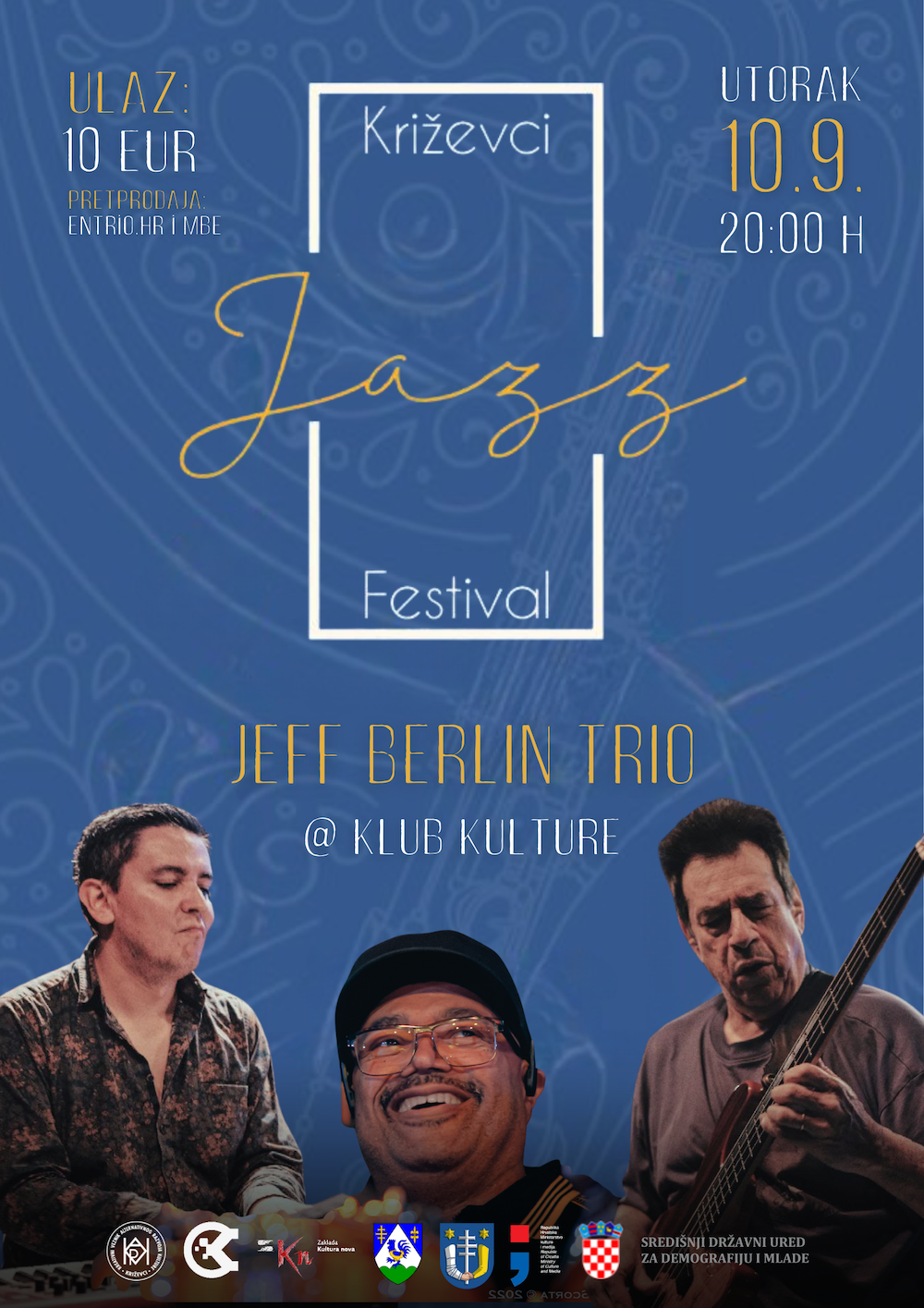 Ovogodišnji Križevci Jazz Festival održat će se 10. rujna s početkom u 20:00 h, a u Križevce nam stiže jedinstveni Jeff Berlin Trio koji redefinira granice suvremenog jazza, sastavljen od trojice najcjenjenijih i najinovativnijih glazbenika na međunarodnoj glazbenoj sceni.